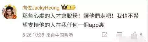 5月26日,向佐回应自己因在社交平台ins上发表驱逐李胜利言论而掉粉4万一事:“那些心虛的人才会脱粉!让他们走吧!我也不希望支持他的人在我任何一个app里”。