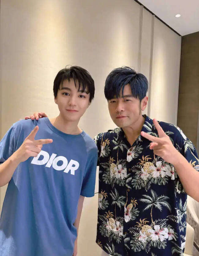 标题:王俊凯晒和周杰伦合照 搭肩比耶表情酷酷的