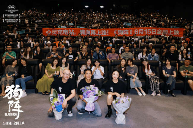 6月12日,电影《狗阵》在北京举行“再次出发”首映礼,导演管虎,出品人、总制片人梁静,领衔主演彭于晏一同出席了映后交流活动。在第77届戛纳国际电影节斩获“一种关注单元最佳影片”和“狗狗金棕榈评审团大奖”双奖后,电影《狗阵》深受国内观众的期待。北京首映过后,观众们同样给出了众多好评,有观众称这是管虎导演的作者表达集大成之作,还有观众评价说这是“管虎最好的一部电影”。