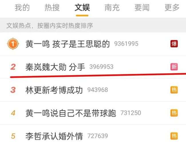 消息一出,立即引发网友热议,不少人猜测他说的是魏大勋和秦岚,很快,一则秦岚魏大勋疑似分手的词条,冲到了热搜前排。