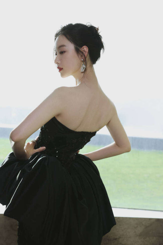 标题:倪妮穿黑色礼裙变身黑天鹅 托腮甜笑温柔俏皮