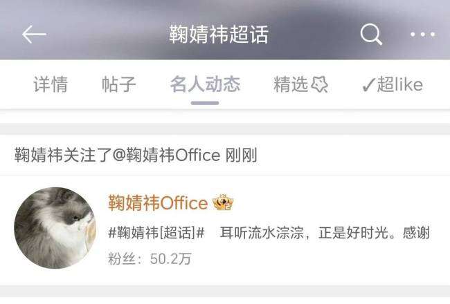 标题:鞠婧祎深夜上线取关前工作室 曾宣布与丝芭不续约