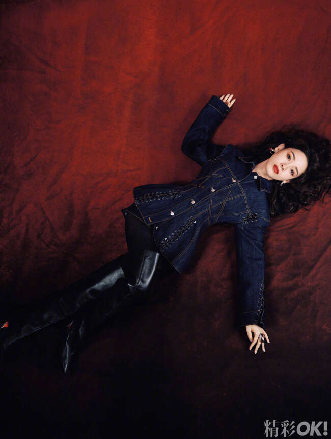 陈瑶拍摄杂志大片,一头空气感羊毛卷配红棕唇色,复古优雅,高贵的裙装和硬朗的牛仔都完美驾驭,展现出不一样的魅力。
