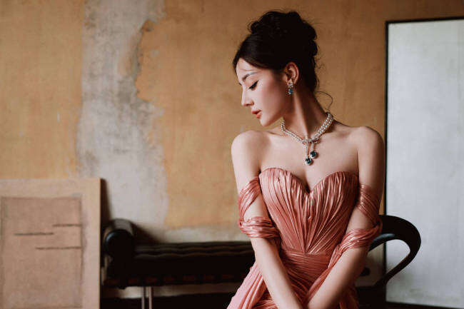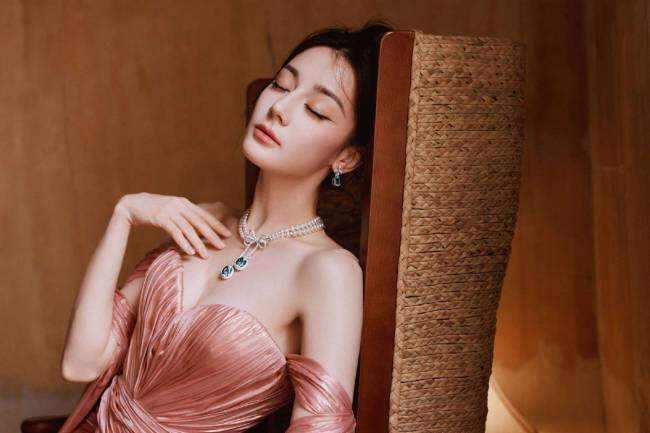 迪丽热巴参加活动拍摄的一组写真美照曝光,她身穿粉色抹胸裙,气质优雅又浪漫。