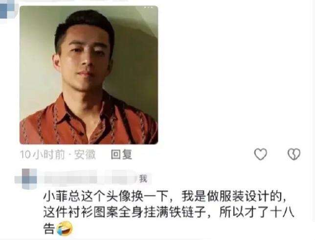 而说到他更改自己头像的原因,上面有网友建议小菲总把这个头像换一下,因为这一件衣服上面全身挂满了铁链子,所以才有了十八告。