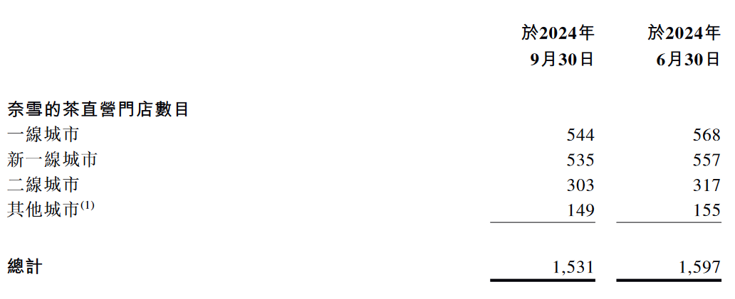 和2023年年报一样,奈雪在三季报中只将直营店绘制成图展现给投资者,而加盟店仅是一笔带过,丝毫没有多说一句的欲望。