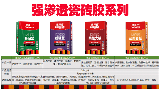 瓷砖铺贴是“隐蔽工程”,一旦出问题,返工成本高昂。德邦仕强渗透瓷砖胶以科学配方、严苛品控和真实口碑,重新定义了瓷砖胶的性能标准。无论是追求效率的施工方,还是注重品质的业主,选择它,即是选择一份长久安心的保障。