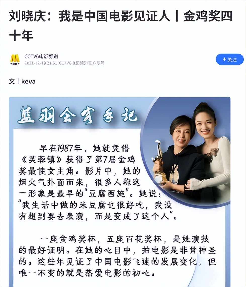信息来源:腾讯新闻 2024-03-18 刘晓庆:我是中国电影见证人丨金鸡奖四十年