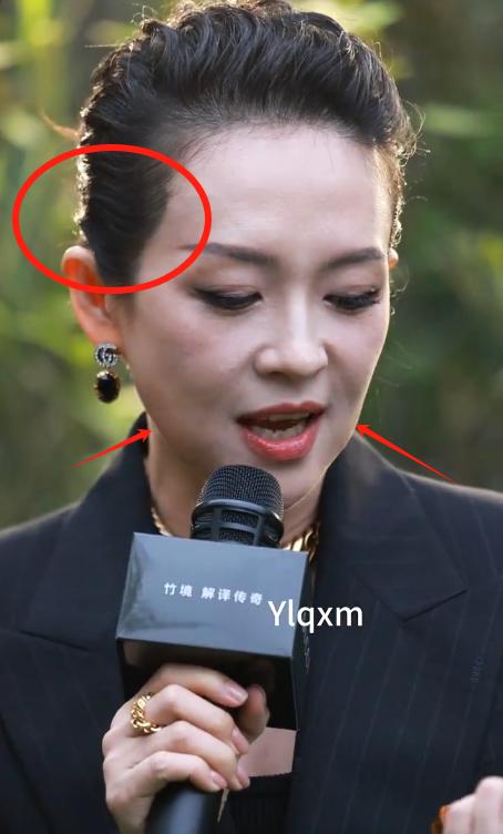 尤其当镜头怼脸拍的时候,网友竟发现章子怡两侧的发际线是画上去的,因为没处理好,看上去黑黑的一片,线条很生硬。