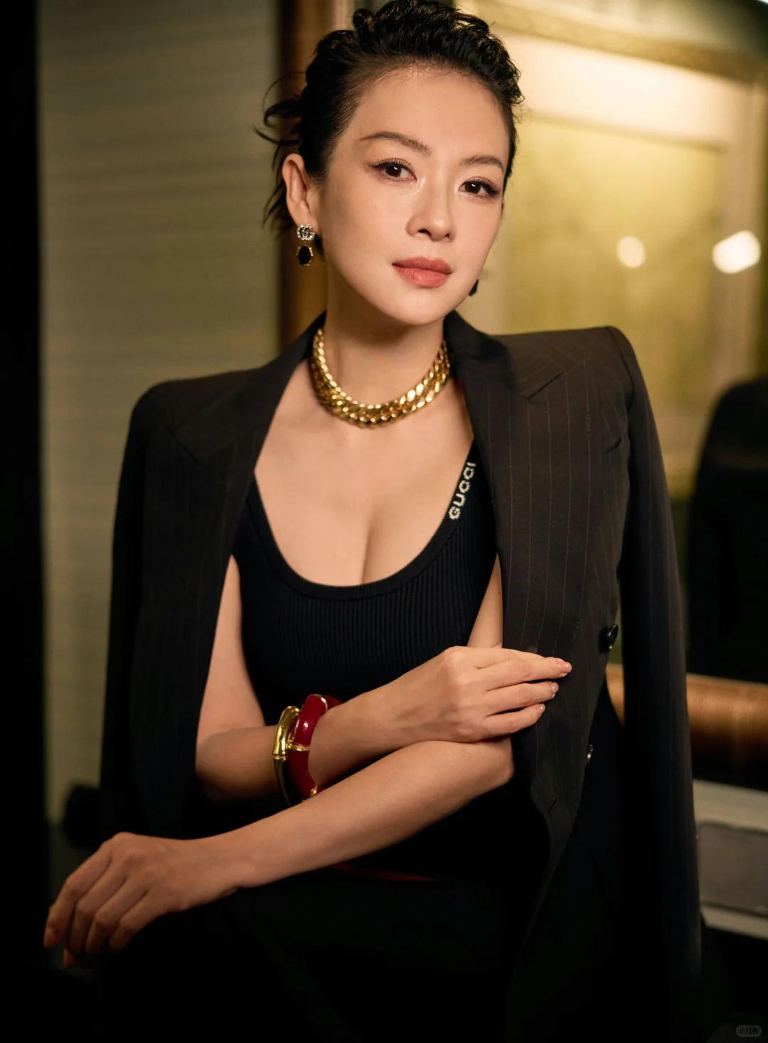 精修图中的章子怡,确实肤白貌美状态很不错,根本看不出来比张凌赫大了快20岁。