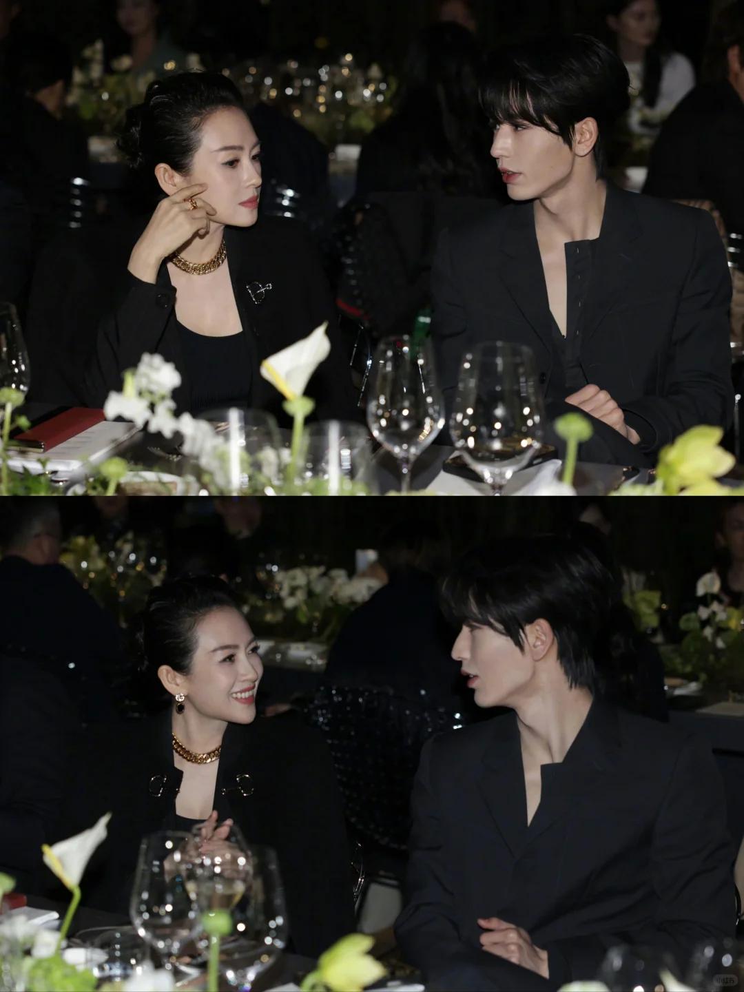 而且活动晚宴上,张凌赫还和章子怡坐在一起热聊呢,把姐姐逗得咯咯直笑。