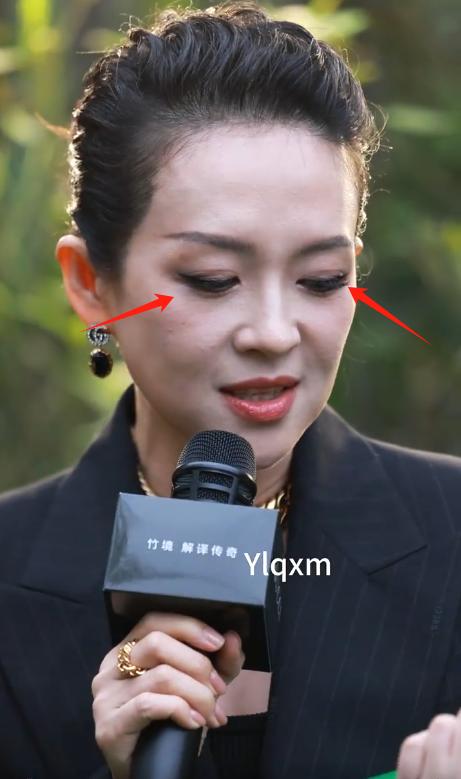 生图下的章子怡,虽然化妆后皮肤还是很白,但明显脸上有了皱纹,法令纹比较深。而且因为上了年纪,脸颊两侧的肉也有点松,也就是大家常说的口角囊袋,十分有年龄感。