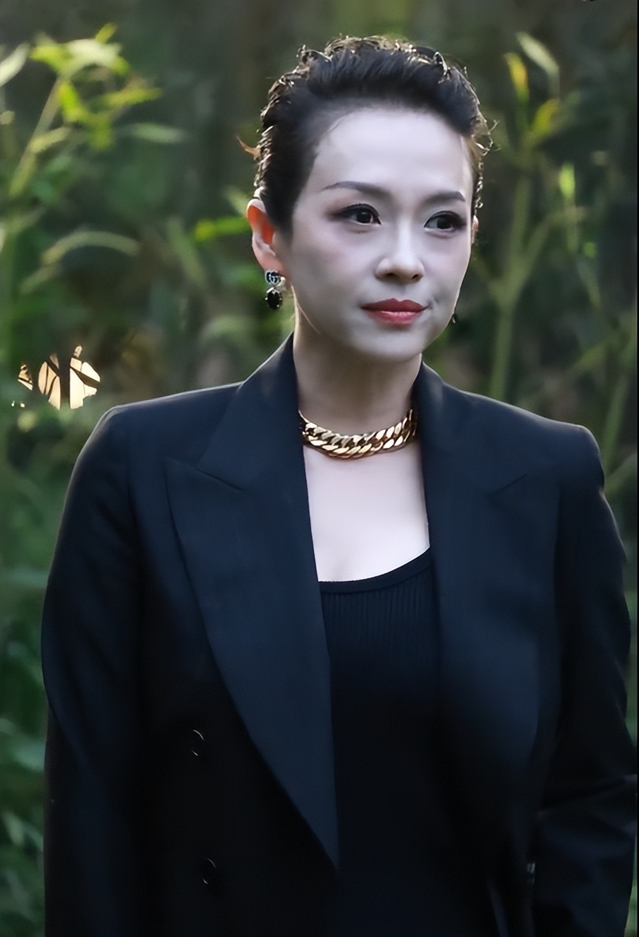 而且一身黑色西装配阔腿裤,看上去又美又飒,感觉跟20多岁的时候都没啥区别。但是,一到生图可就不一样了。
