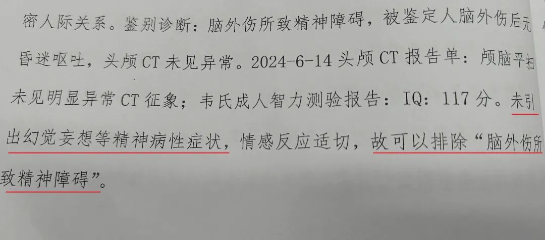 在安徽某司法鉴定机构对张坡所做的司法鉴定意见书上,大象新闻记者看到,在精神医学诊断分析中写有:“成人智力测验报告:IQ:117分。未引出幻觉妄想等精神病症状,可以排除脑外伤精神障碍。”“对自身违法行为辨认力及控制力完整。”等诊断分析结果。