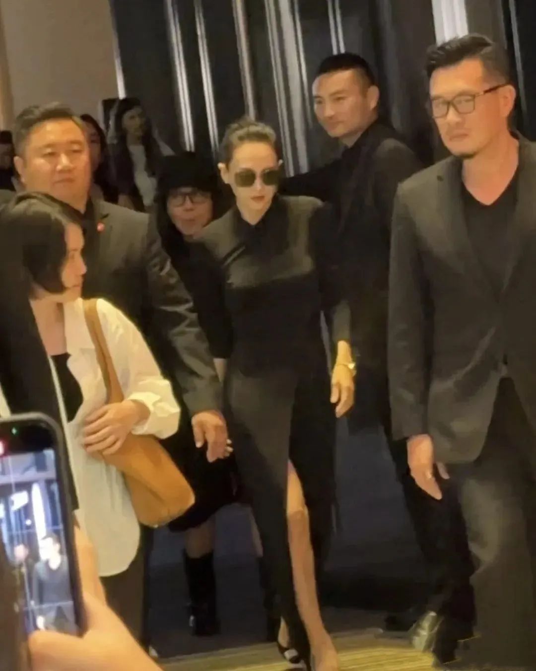 当天,章子怡身穿一条黑色的连衣开叉长礼裙,扎了一个高丸子头,戴了一副墨镜,一身极其简约低调的造型出场,却瞬间让她成为了全场的焦点。