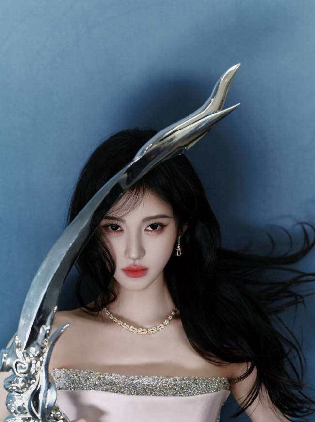 标题:鞠婧祎穿百褶长裙温柔优雅 头戴羽毛装饰又纯又欲