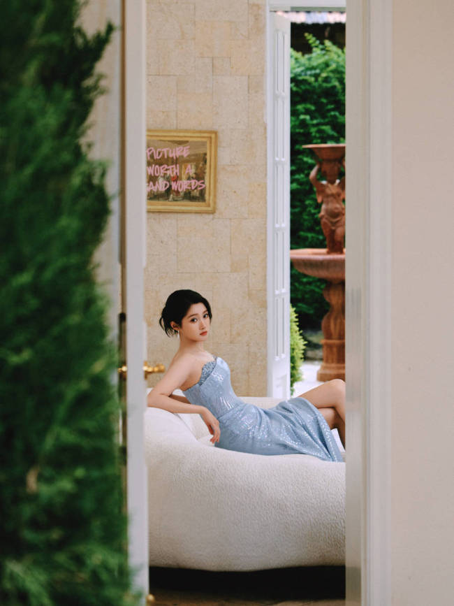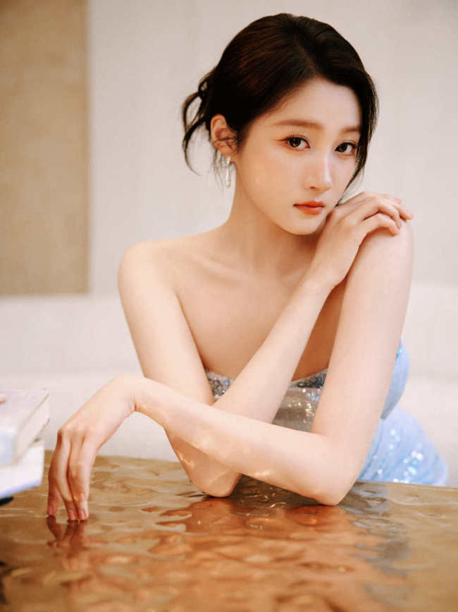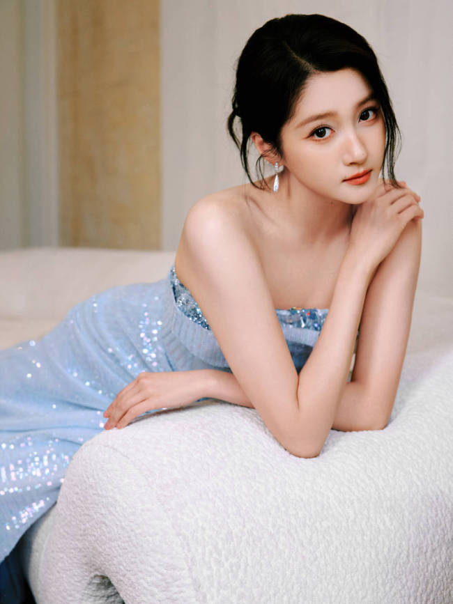 关晓彤工作室晒出了一组她的最新活动造型图,身穿一袭蓝色抹胸开叉裙,性感妩媚。