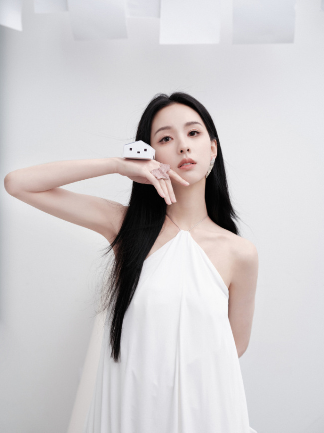 近日,陈都灵工作室放出她的一组照片,照片中的陈都灵穿白色套装,露出纤细肩颈线条。垂眸沉思的样子很想清纯白月光。