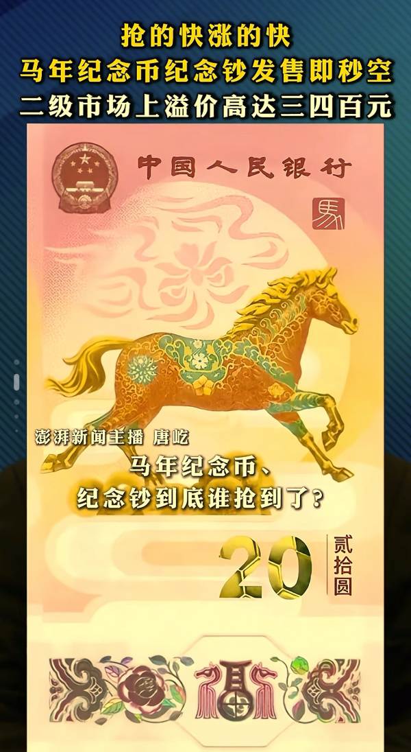 “马年纪念币和纪念钞的发行量各1亿,这个量级其实并不小。目前的溢价很大程度上是由‘首发效应’和投机资本炒作带动的。”