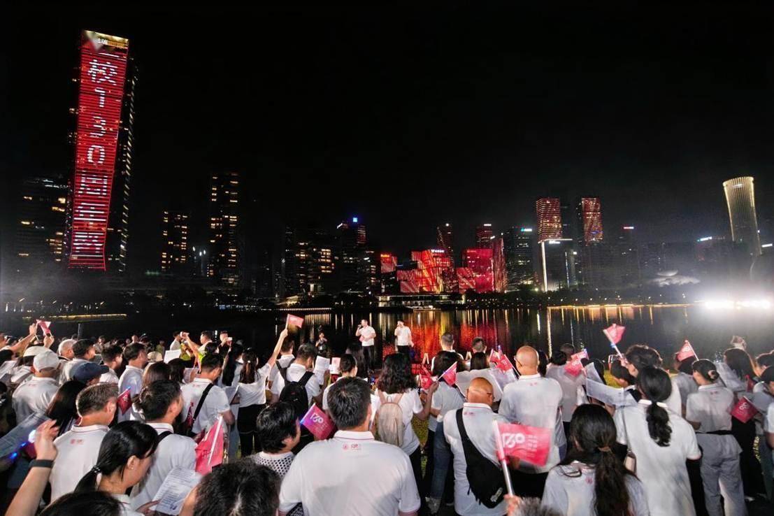 当晚,当深圳湾的暮色逐渐沉落,中国华润大厦与鹏瑞大厦两座摩天大楼,如同被点燃的巨型画布,为西安交通大学建校130周年暨西迁70周年的庆祝活动拉开序幕。
