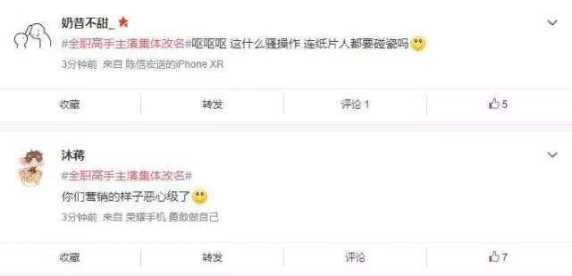 其中不少原著书粉对于《全职高手》真人电视剧的这次改名操作比较反感,甚至还有人表示“这什么骚操作?连纸片人都要碰瓷吗?”“你们营销的样子恶心级了”,看来《全职高手》的原著书粉对于这次真人版电视剧的这次改名宣传真的是深恶痛绝,不过这也能理解,毕竟每个人心中都有一个叶修的形象,不能说哪位演员就等于是叶修。
