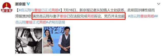 7月初,媒体公布了董璇和高云翔离婚的消息,后续董璇及其工作室都没有进行否认,算是侧面证实传闻了。