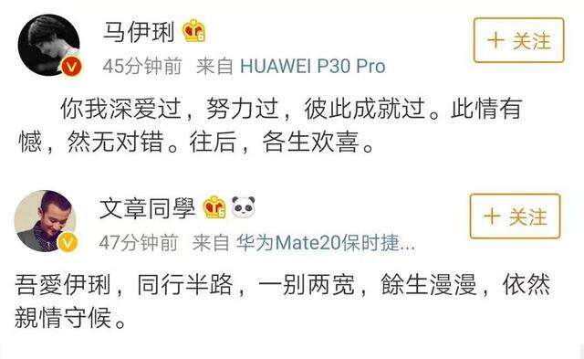 没想到在今天,两人直接以“写诗”的形式承认了离婚传闻。特别是马伊琍的一句“此情有憾”,跟当初那句原谅文章的“且行且珍惜”结合起来看,给人一种两人终于走不下去,倒不如分道扬镳更好的感觉。