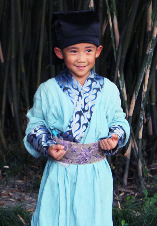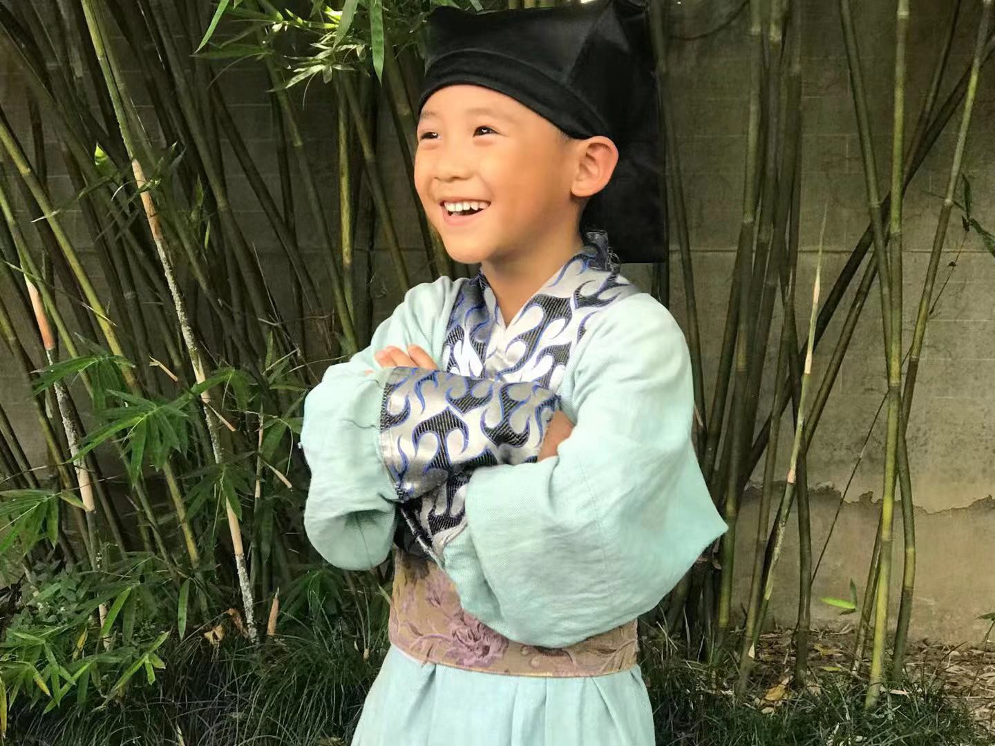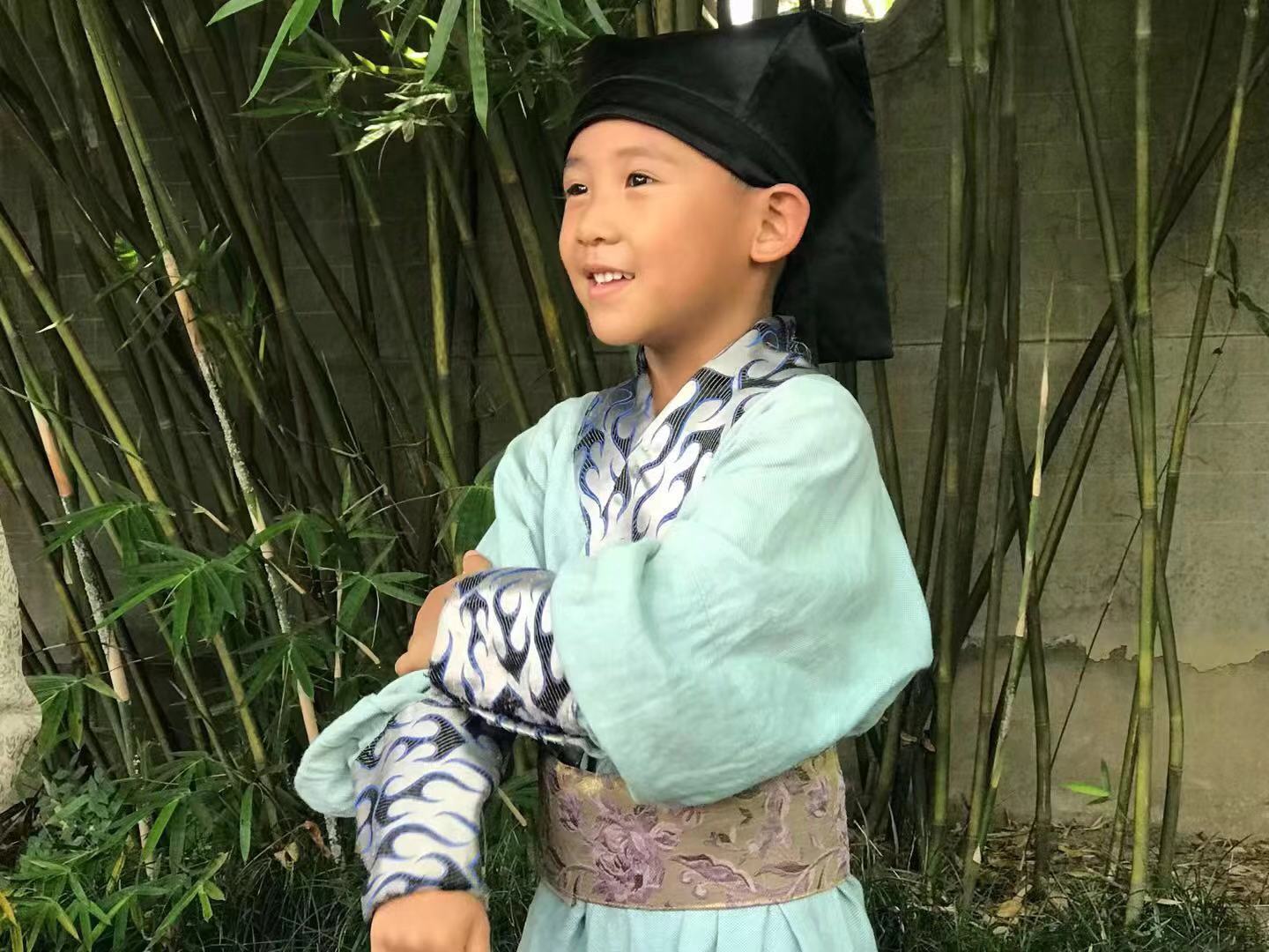 来自广州的5岁小演员冯健倍在微电影《木兰从军》中饰演王虎。