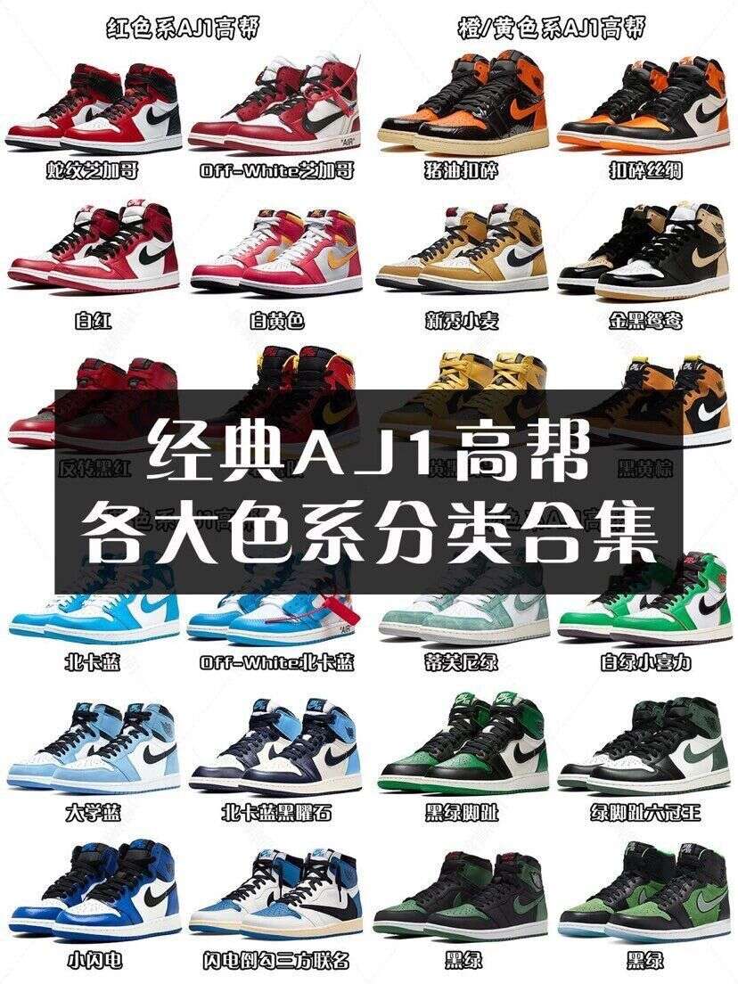 AJ1是国际著名的运动商NIKE依托NBA明星迈克尔·乔丹个人形象打造而成的球鞋系列的第一代产品,AJ1 是Air Jordan 1的简写,AJ则被译为“空中飞人”。作为以迈克尔乔丹名字命名的系列产品,在设计上自然少不了要关联他篮球生涯之中的各种辉煌事迹,这些事迹都被设计师巧妙地制作成图案和纹饰装点在产品上。AJ1刚刚面世的时候总体上与大多数运动鞋相像,不过NIKE在颜色搭配上做了调整,一改市面上常见的白色,用红黑颜色进行搭配,使之在运动鞋市场上别具一格。
