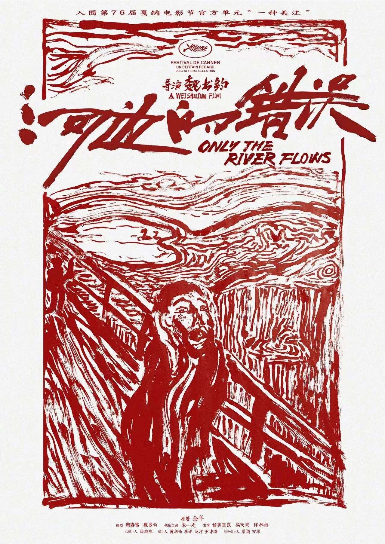 电影《河边的错误》国际版海报。由魏书钧执导的荒诞现实主义题材,改编自余华同名小说,朱一龙、曾美慧孜主演,入围第76届戛纳电影节“一种关注”单元。国际版海报受到表现派画家蒙克的作品《呐喊》启发,以其为概念原型,用血红粗旷的木板雕刻笔触结合中国风。故事讲述了一桩吊诡凶案牵扯出多名嫌疑人,刑警队长马哲(朱一龙 饰)被无法言喻的真相不断拨弄,逐渐陷入荒诞、不安和分不清是真是幻的时刻与记忆中......