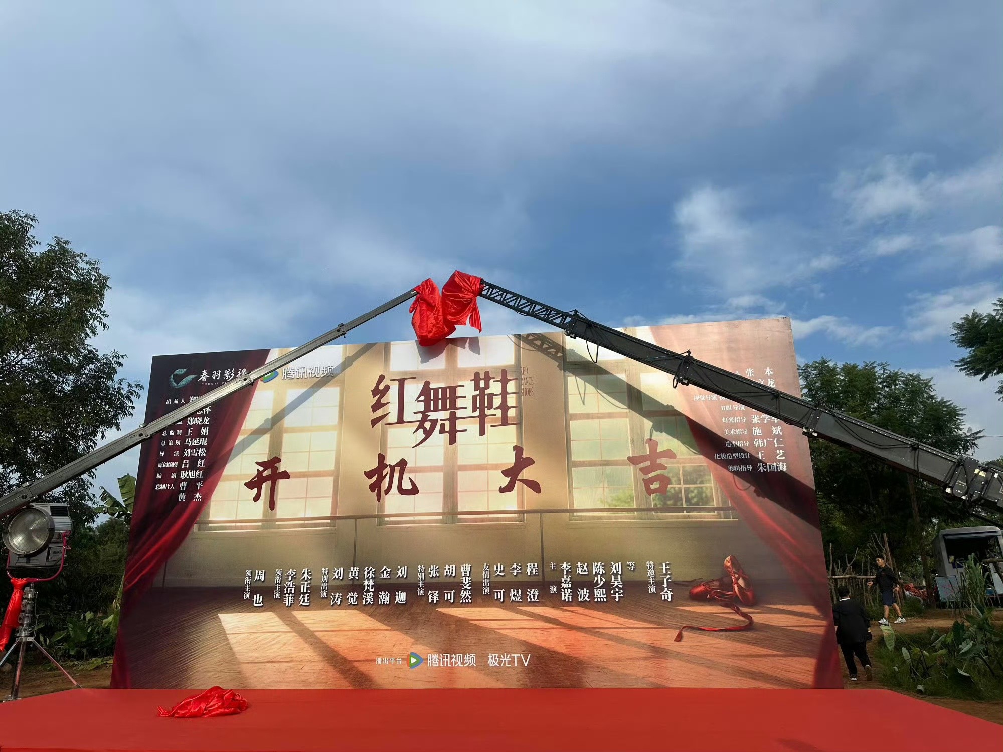 电视剧《红舞鞋》开机大吉,由春羽影视、腾讯视频出品,郑晓龙担任艺术总监,曹平担任总制片人,刘雪松执导,吕红原创编剧,耿旭红编剧,周也、李浩菲、朱正廷领衔主演,刘涛、黄觉、徐梵溪、金瀚、刘迦特别出演,张铎、胡可、曹斐然特别主演,史可、李煜、程澄友情出演,李嘉诺、赵波、陈少熙、刘昊宇等主演,王子奇特邀主演的年代军旅情感励志。该剧为原创剧本,以二十世纪七八十年代为背景,讲述了舞蹈天才少女林雪帆在经历上山下乡后,如愿进入红星文工团,与年轻伙伴们一起追逐青春、爱情、事业,在时代沉浮与个体命运中奋斗成长,最终实现人生理想的故事。
