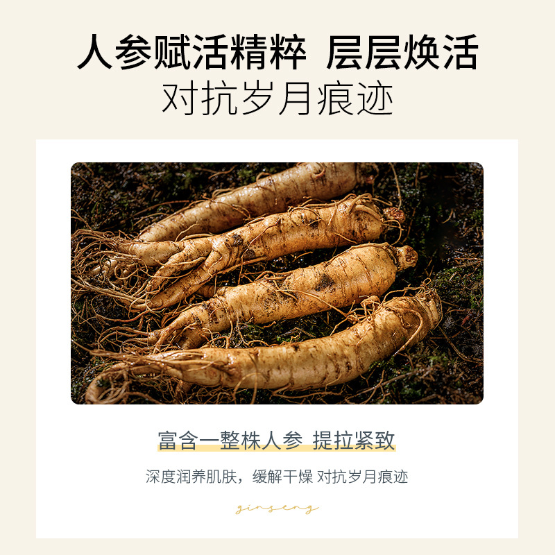 淡淡人参味,熬夜不垮脸,夜猫子的和轻熟肌肤最爱,去黄谈纹,让肌肤长效美白!