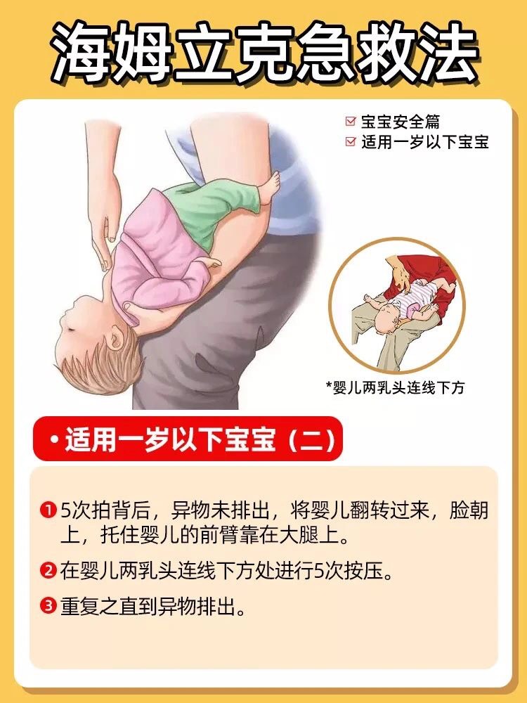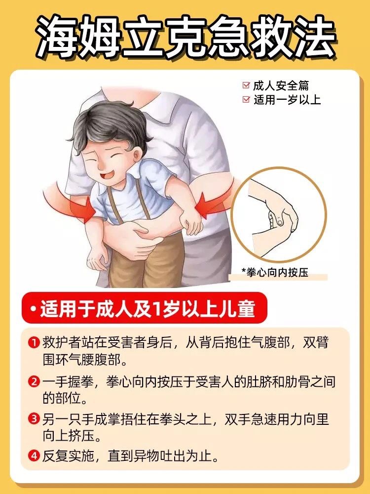 如果不小心孩子被异物卡到气管,该如何正确急救?海姆立克急救法是目前最有效的一种急救方式。