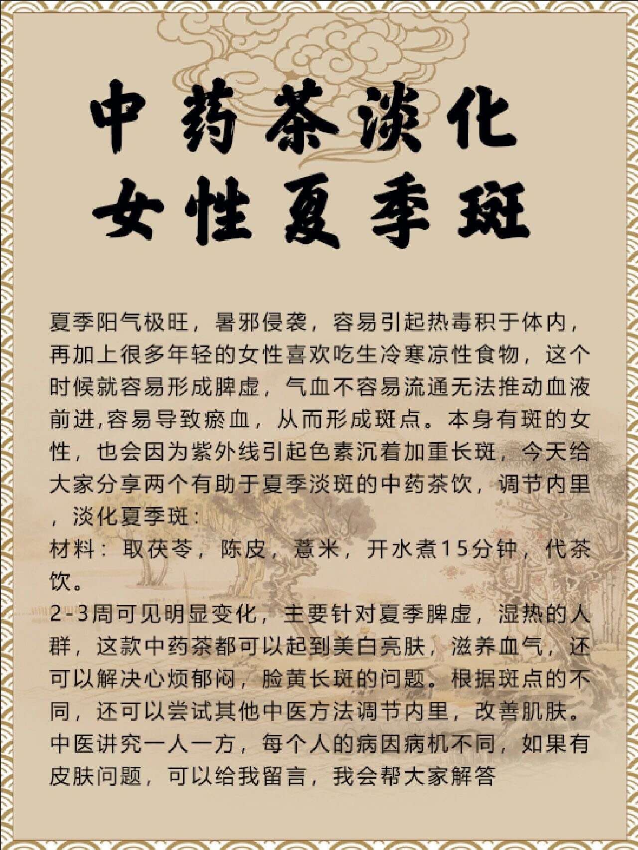 一款中药茶 淡化女性夏季斑