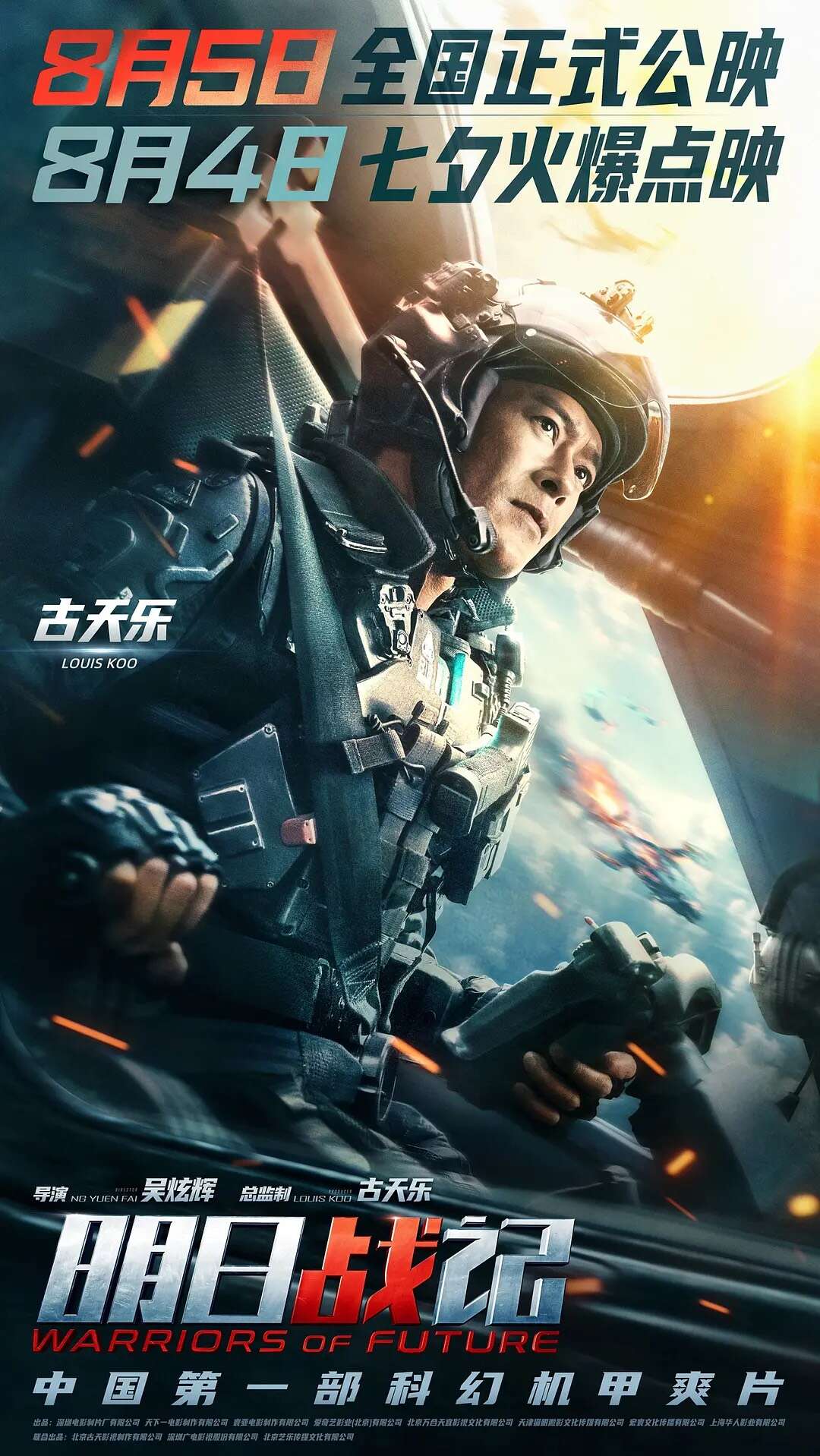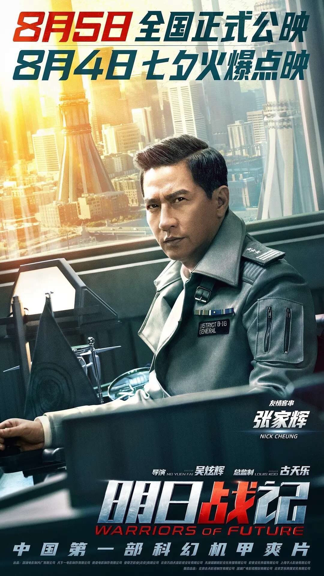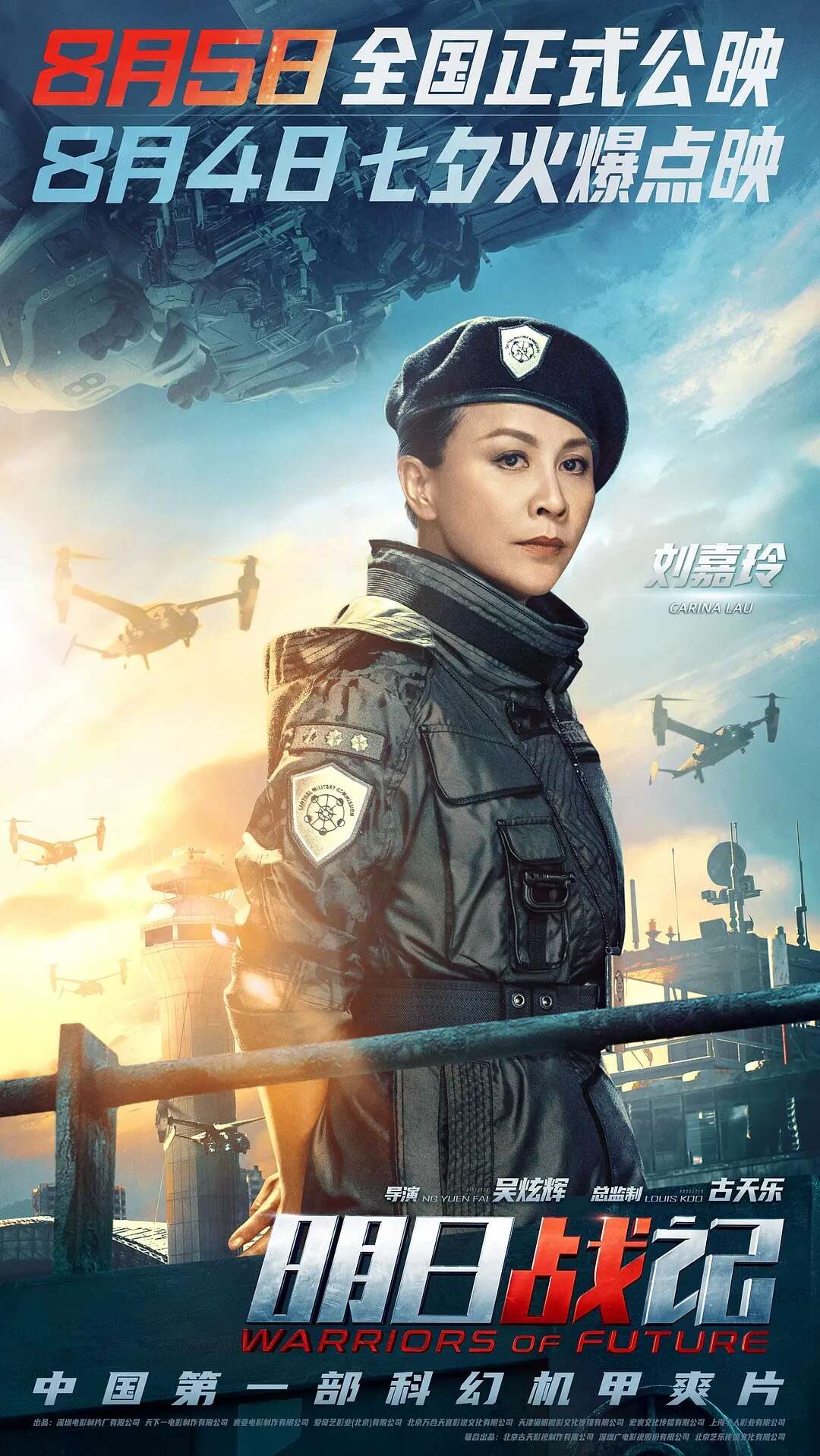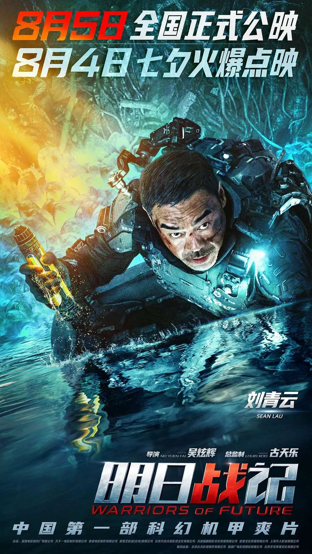 电影《明日战记》海报并提档,由吴炫辉执导,古天乐担任总监制,古天乐、刘青云、刘嘉玲等主演,张家辉友情客串的机甲硬科幻机甲战队全员集结,身处未来战场的战火之中。影片将于8月5日正式公映,8月4日七夕点映,目前预售已开启。
