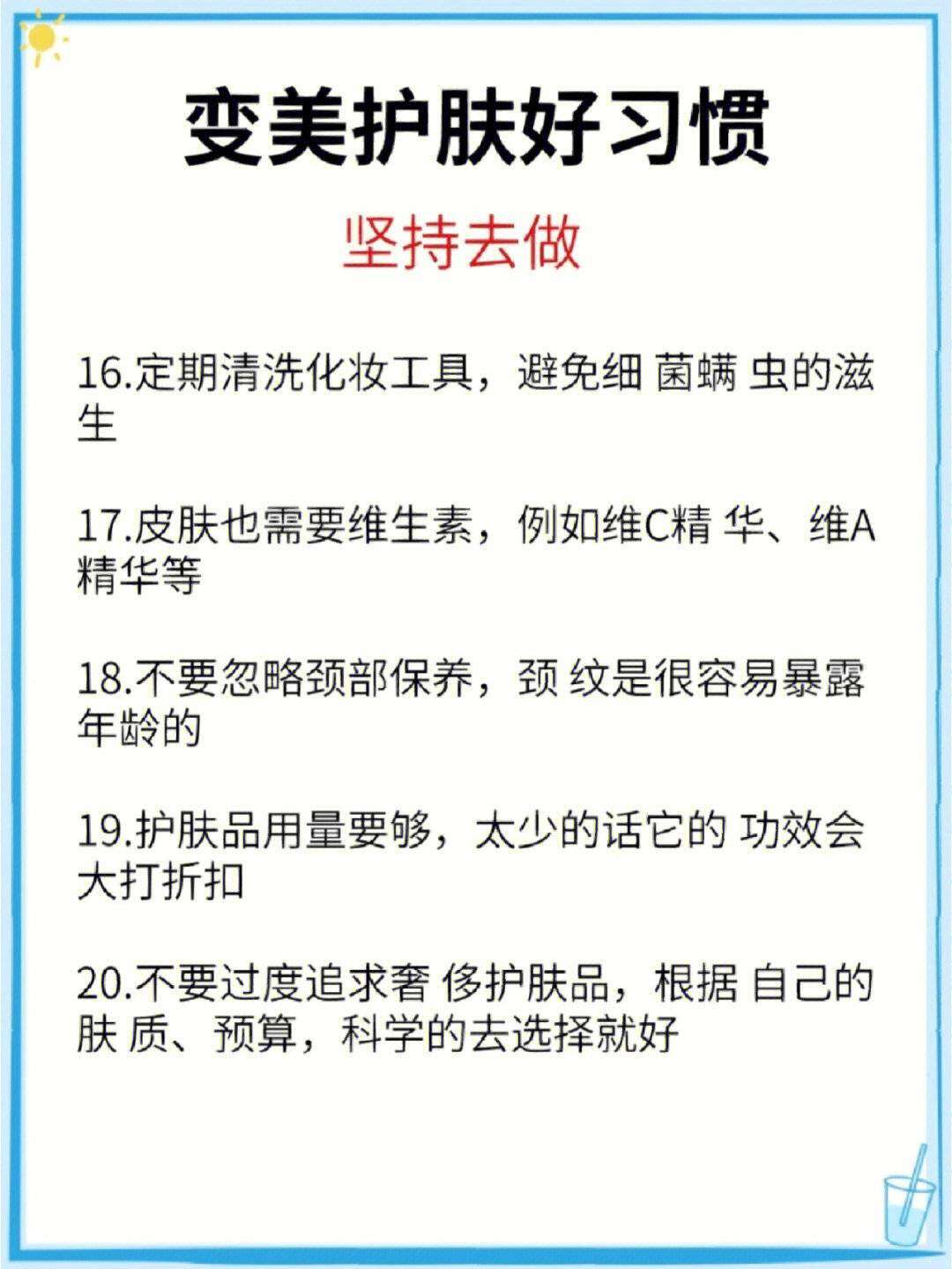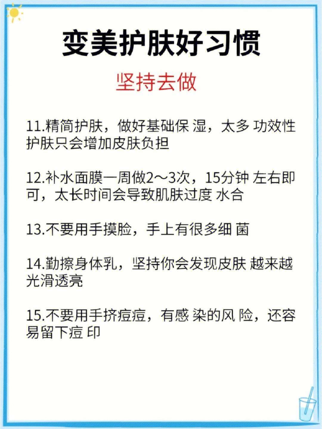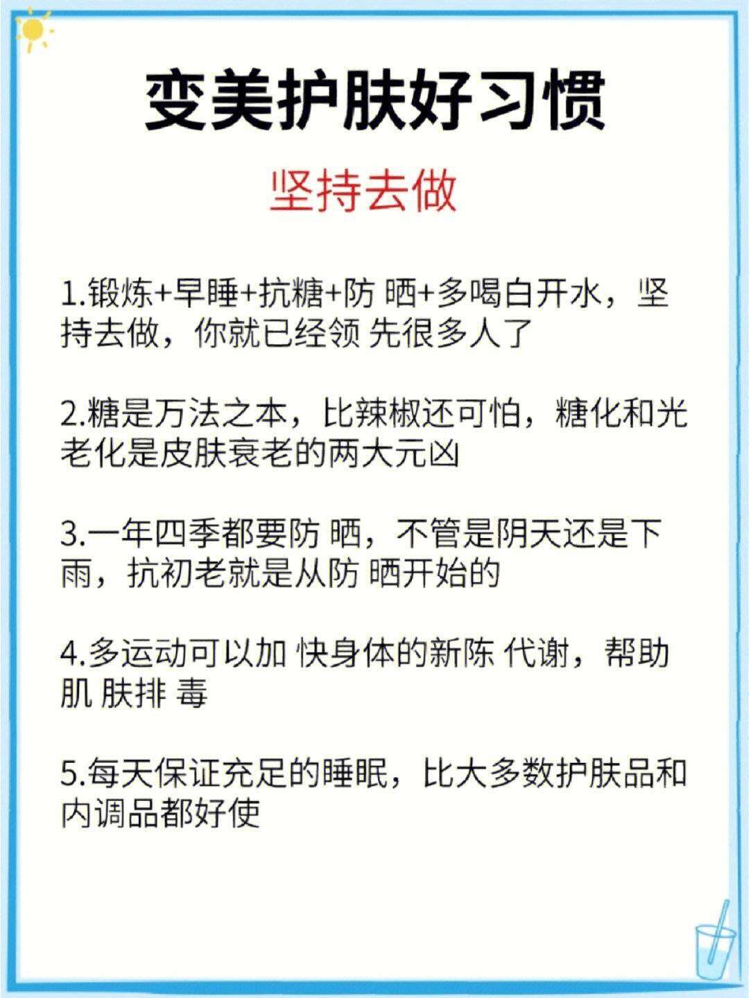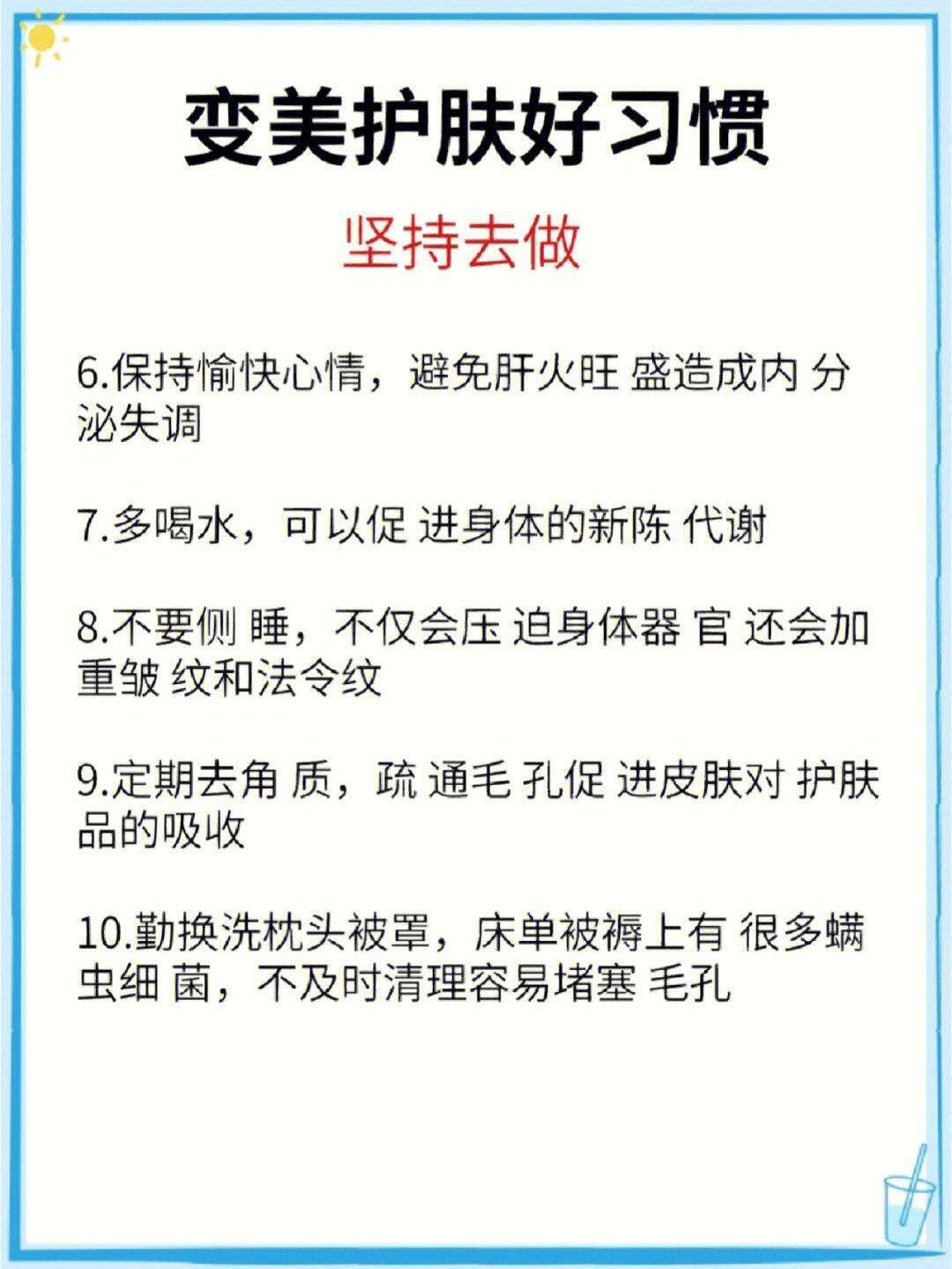 护肤好习惯,坚持做,好皮自然来?? 一个好的护肤习惯带来的不仅是皮肤的好转,更是面对别人间的自信,不再社恐,面对人可侃侃而谈,从一个护肤好习惯开始做起呦! 坚持运动 做好仿晒 多喝温水 保持愉悦 今天开始,让我们坚持好习惯,杜绝坏习惯,好皮肤自然来!#护肤 #变美我熟 #好习惯