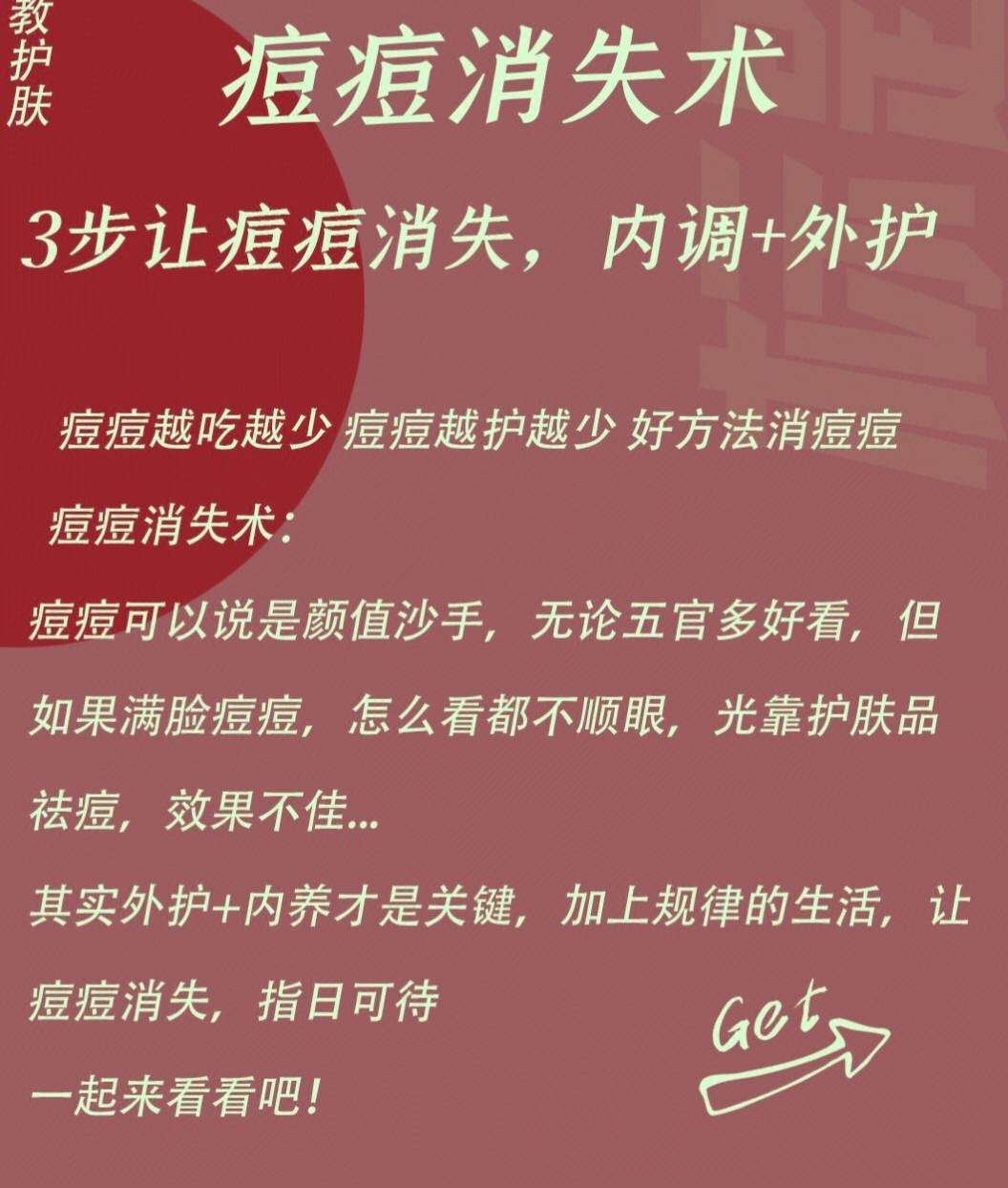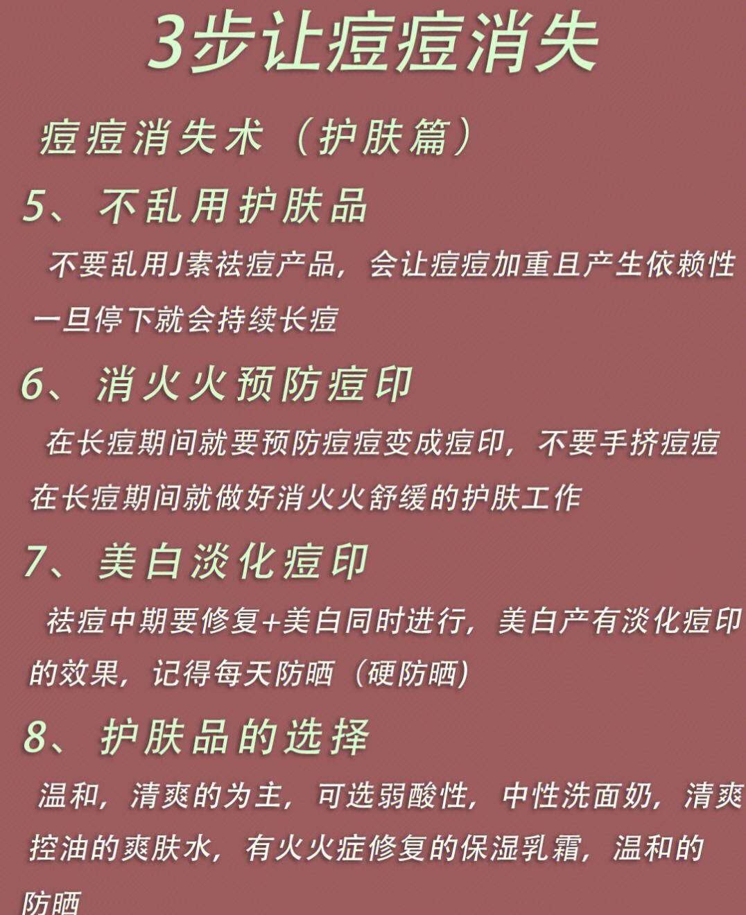 长痘只想着,怎样快速祛痘?祛痘印?本来心情很好的,一照镜子,整个人都不好啦!痘痘啥时候能长在别人身上 如果你是痘痘肌,这篇文章一定要看!让痘痘从你的生活中消失 一般长痘,你都只想着怎么让脸痘痘消失,把 目光放在脸上的痘痘上,光想着怎么祛脸上的痘痘,所以,怎样祛痘,都是反反复复的 长痘不光是脸部的问题,跟生活,体质有关所以,外护+内养才是关键,方法对了,祛痘就成功一半了 和我一起把这篇痘痘肌自救清单,码起来,消痘痘吧!